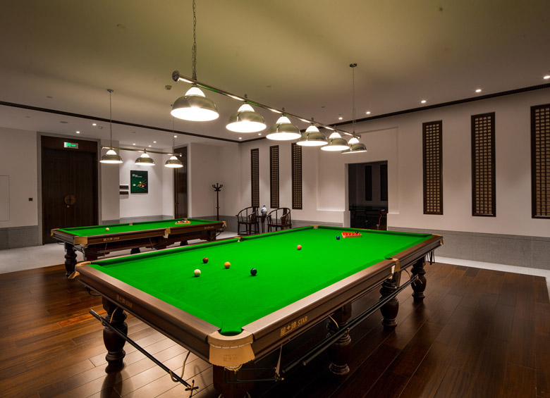 酒店拥有星牌顶级钢库比赛球台,所有台球桌均采用宽幅6811台腻,公杆LP,顶级无影灯,室内空调全天制开放,古典雅儒的装修风格,清静的环境,让您在娱乐的同时感受到更加舒适惬意。